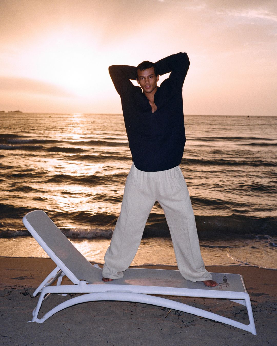 A generously wide legged trousers featuring an elasticated waistband. The handwoven fabric combines the comfort of linen and the luxurious touch of silk, giving these trousers fantastic drape. These trousers are also part of a set, find the matching jacket here. Wear them casually with a t-shirt or wear the full suit to relaxed summer events.