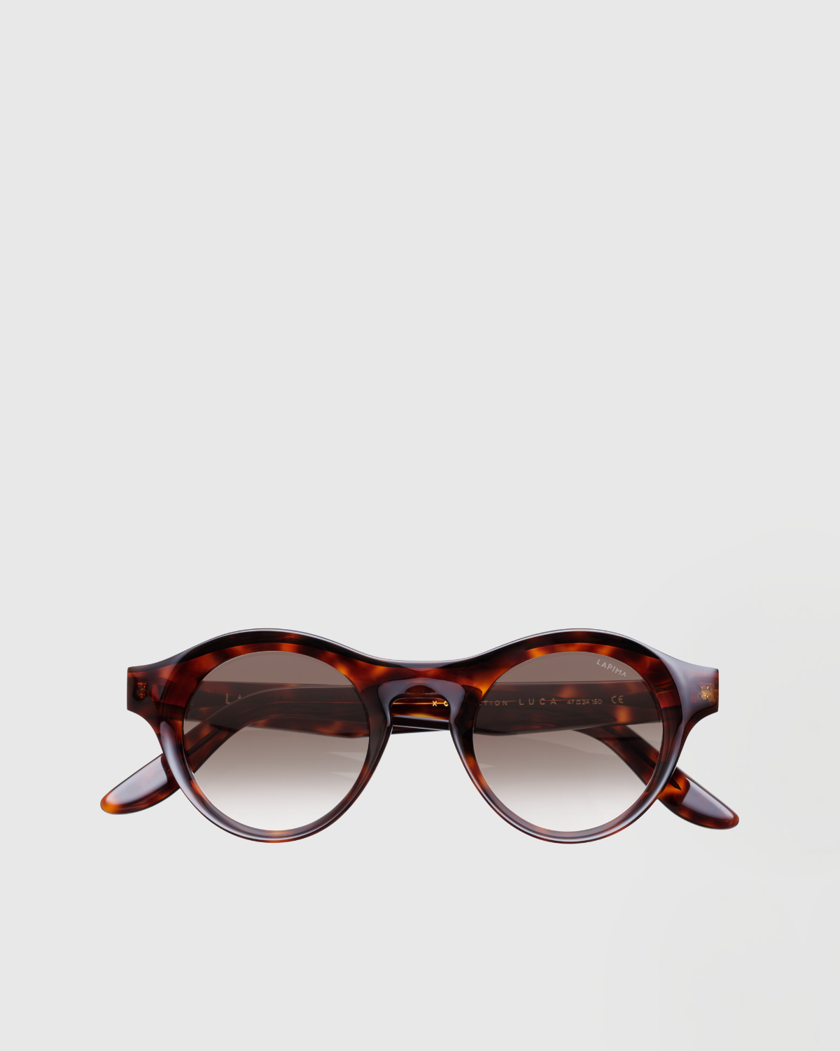 Round, unisex, phantos style. Super light, with lens size that supports multifocal use. Deeply shaped negative surface detail on the front and “key” shaped bridge that adapts well to various nasal types. Each pair is handmade at the Lapima atelier in Brazil.