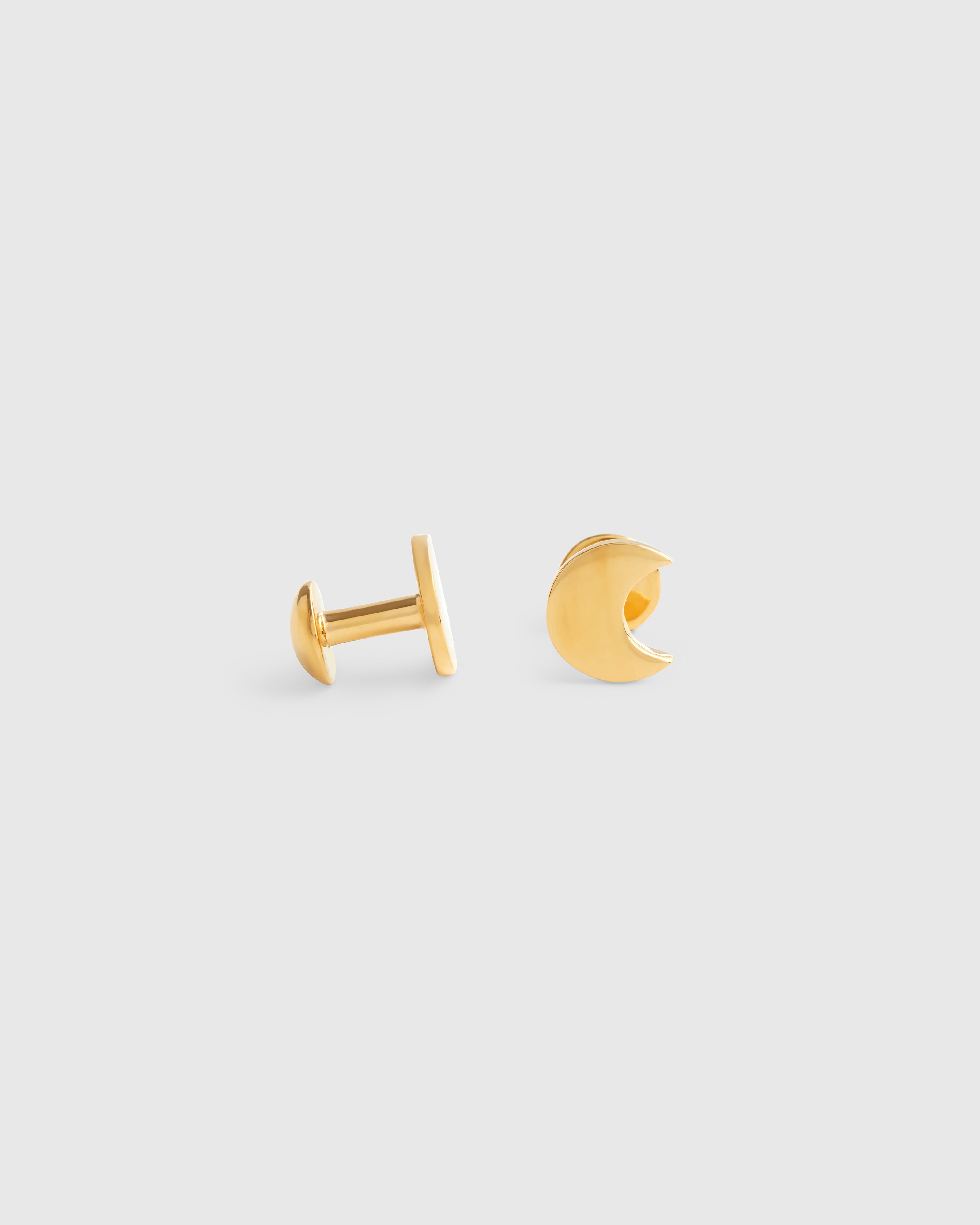 Featuring a unique moon shape, these 100% pure silver cufflinks are gold plated and a perfect addition to any outfit. Also can be purchased as a single item here.